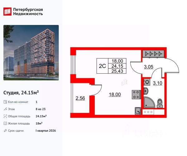 Квартира сдаётся в II квартале 2026 года.