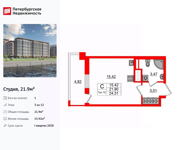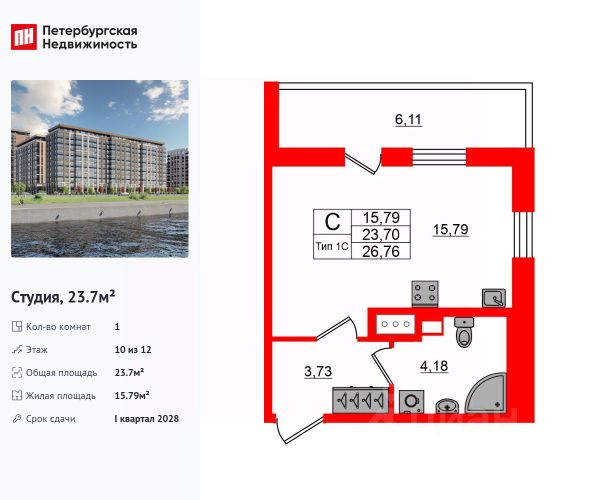 Продается просторная студия от застройщика в жилом комплексе "Пульс Премьер" в активно развивающимся Невском районе. До метро можно добраться на транспорте всего за 10 минут. Удобная, классическая, функциональная европланировка, просторная прихожая 7.79 м². Общая площадь студии - 30.79 м², жилая 15.14 м², высота потолка 2.75 м. Квартира продается с отделкой "Норд Лайн серый плюс". Что особенного в ЖК "Пульс Премьер"? • Премиальные виды на Неву • Отличная транспортная доступность: 2 станции метро и крупные магистрали • Пешеходный променад с ландшафтным дизайном и зонами отдыха • Центр притяжения - городская площадь у набережной с современным благоустройством • Алюминиевые окна в квартирах Хай Флет (High Flat) (последние этажи)