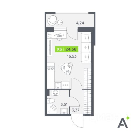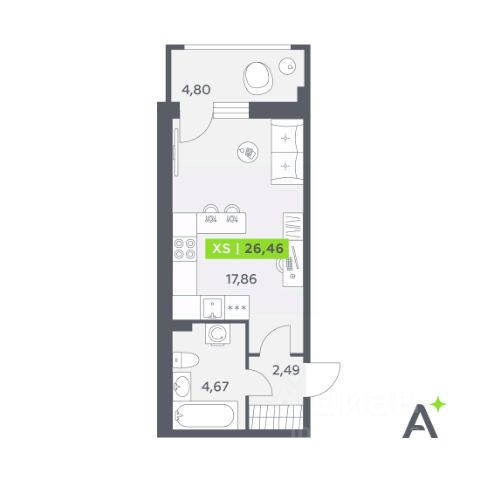 Продается квартира-студия укомплектованная мебелью, на среднем этаже от лучшего надежного застройщика Петербурга и Ленобласти.