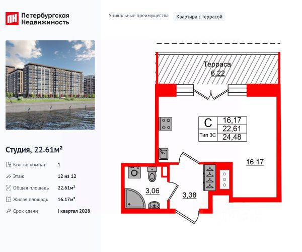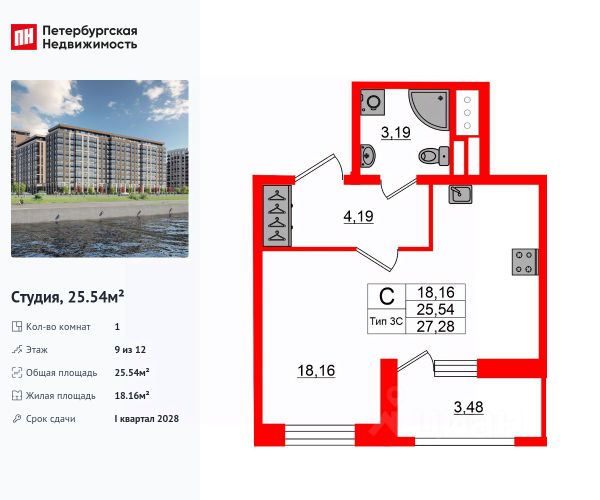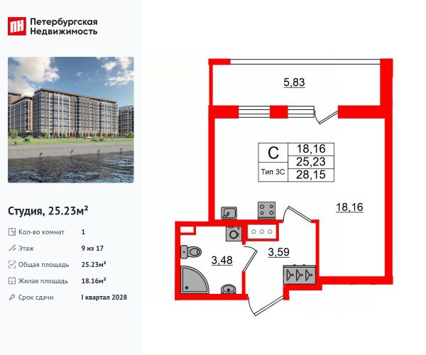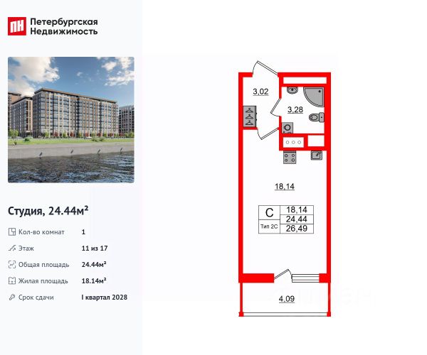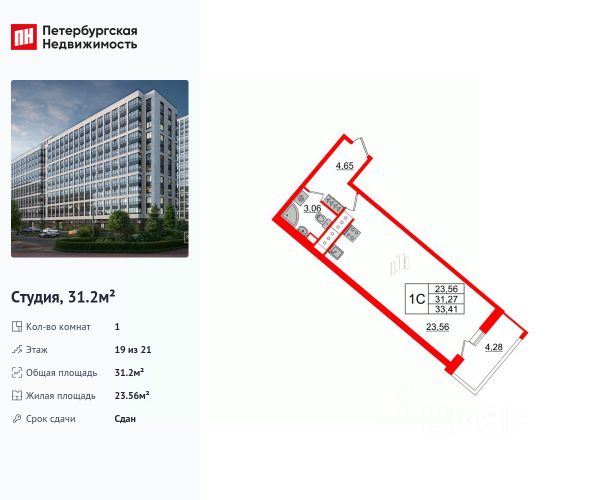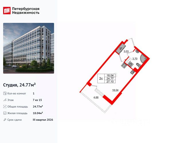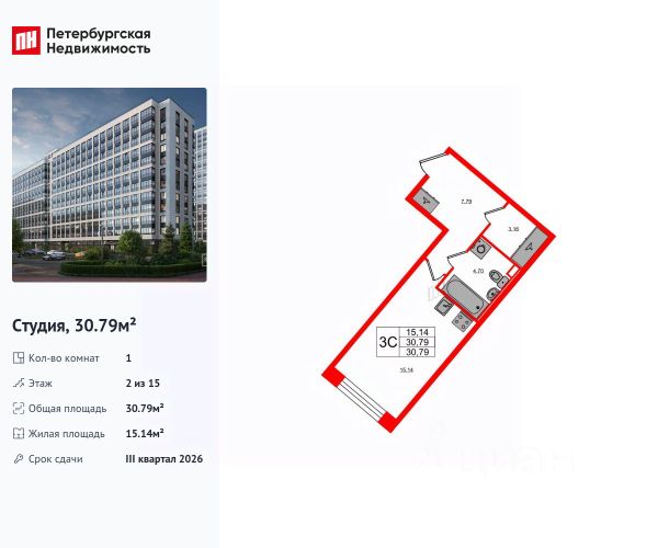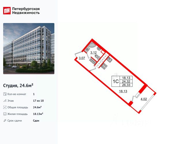 Продаем отличную студию в ЖК "Пульс на набережной",