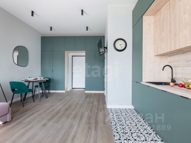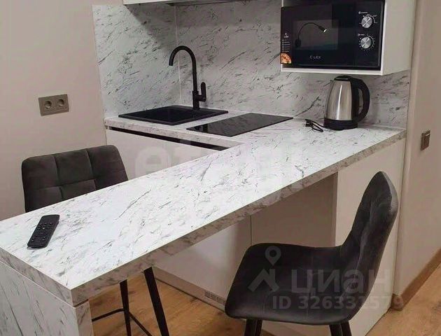 Общая площадь студии - 35.6 кв м. Находится на 9 этаже с панорамным видом на город. Дизайнерский ремонт. Функциональное зонированное пространство: спальная зона и оборудованная кухня со встроенной техникой (посудомоечная машина, холодильник, варочная панель, вытяжка), рабочая зона и гостиная с передвижной барной стойкой. Диван в гостиной раскладывается, под кроватью есть доп место для хранения вещей. СУ совмещенный, большая душевая, стиральная машина. В коридоре вместительный шкаф для хранения одежды. Два больших окна, что дает много света. Вся мебель и техника входит в стоимость и останется новому собственнику! Квартира не требует дополнительных вложений и времени на ремонт. Въезжай и живи или сдавай.