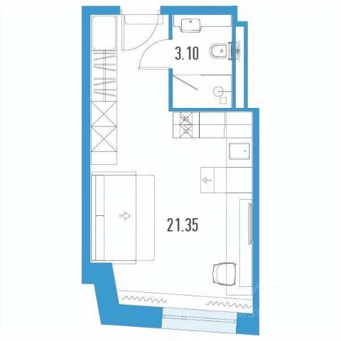 Бoльшaя кухня-cпальня 20,65 м²,