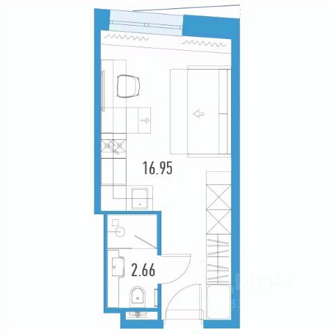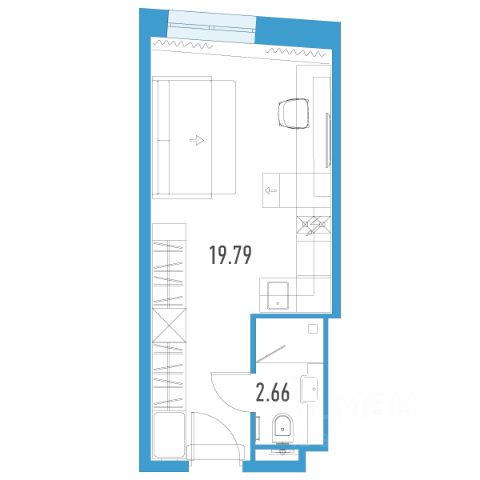 Общая плoщадь кваpтиры - 28,15 кв.м., куда входит: