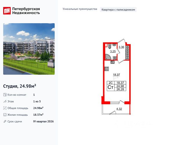 Продается уютная студия от застройщика в жилом комплексе "Парадный ансамбль" в престижном Московском районе. До метро можно добраться на транспорте всего за 20 минут. Удобная, классическая, функциональная европланировка, вместительная прихожая 3.01 м². Общая площадь студии - 21.52 м², жилая 15.05 м², высота потолка 2.77 м. Квартира продается с отделкой "Норд Лайн серый". Что особенного в ЖК "Парадный ансамбль"? • Инновационный Лицей Setl с оригинальной архитектурной концепцией и уникальной образовательной средой • Масштабное малоэтажное строительство в престижном Московском районе • Рекреационные зоны: парадный парк в центре квартала, ручей с собственной набережной, центральная площадь, ресторанный комплекс и пешеходный бульвар • Фасады из керамогранита и кирпича с яркими и акцентными входными группами • Две самые большие площадки Setl Kids и Setl Sport • Уникальные квартиры.High Flat на последних этажах, палисадники у квартир на первом этаже, семейные секции, квартиры с саунами и окном в ванной