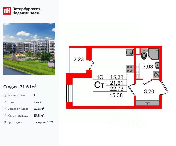 Продается большая, светлая, теплая студия, с квадратной комнатой и застекленной лоджией (5,7 квадратных метра плюс к общему метражу), с добавочным выходом в зеленый двор. Окна выходят на юго-восток; солнышко, если светит, то в первой половине дня. Студия расположена в современном пятиэтажном доме в ЖК "Зеленый Квартал" на Пулковских высотах. Дом построен и сдан в 2023 году группой компаний Сетл-Сити. В квартире отделка от застройщика в светлых тонах.