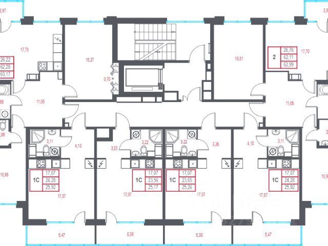 • Раздельные санузлы с ванной