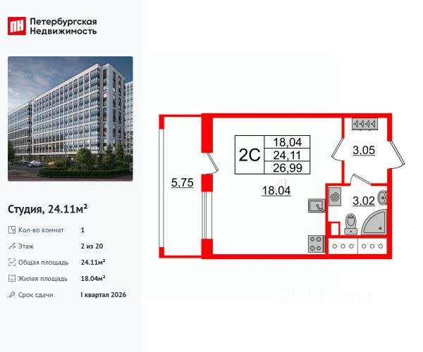 Срок сдачи дома: 2 квартал 2026 г.