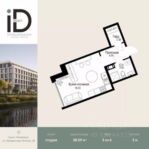 В продаже квартира в строящемся ЖК ID Рetrogradskаyа Комнат: студия Этаж: 6/6 Секция: С17 Площадь общая: 27,37 Площадь жилая: 16,21 Балкон: нет Номер: 506 Квартира передается без отделки, что позволяет воплотить свои дизайнерские идеи и создать уникальный интерьер. Во всех квартирах потолки 3 м и панорамные окна высотой 2,8 м. В каждой секции и на каждом этаже спроектированы помещения для установки кондиционеров. Предусмотрены грузовые лифты, на первых этажах организованы места для хранения детских колясок. Отделка входных групп и общих зон выполнена по авторскому дизайну. ______________________________________________ Срок сдачи 2029 г. Квартира продается по переуступке. Клубный квартал состоит из 29 секций в 6 этажей, располагается в Петроградском районе Санкт-Петербурга — между улицей профессора Попова и набережной реки Карповка. Одной из главных достопримечательностей выступает Иоанновский женский монастырь. Окна многих квартир выходят на живописную реку Карповку. Проектом предусмотрено благоустройство набережной, также застройщик отреставрирует артезианскую скважину императорских времён. Комплекс возводится в пешей доступности от трех станций метро — Петроградская, Чкаловская и Чёрная речка. В шаговой доступности находятся магазины, салоны красоты, медицинские центры, рестораны и сервисы. На территории запланирован детский сад на 100 мест и начальная школа на 200 мест. Проектом предусмотрен подземный паркинг, доступ в который осуществляется на лифте с жилых этажей. Гостевые парковки вынесены за периметр домов. Также на территории паркинга предусмотрены индивидуальные кладовые для хранения вещей жителей. Благодаря мосту Бетанкура и удобным выездам на главные транспортные магистрали (съезды на Уральскую улицу, набережную Макарова, ЗСД, Морскую набережную и проспект Кима), добраться до любой точки города и аэропорта Пулково комфортно и быстро.