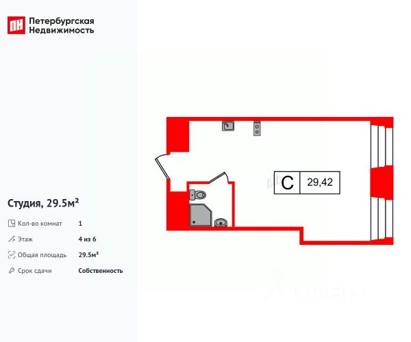 Планировка: прихожая, кухня, санузел (ванна), изолированная спальня/гостиная, гардеробная, лоджия.