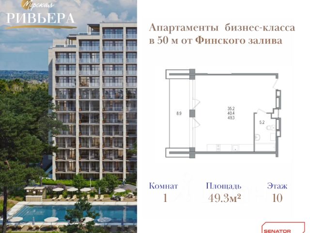 Продаются просторные апартаменты у самого берега Финского залива площадью 51 м2 в комплексе бизнес-класса "Морская Ривьера". Располагаются в единственном корпусе на 11 этаже из 12. Лот с черновой отделкой, с лоджией. Высота потолка 3м. ВЫСОКИЙ ИНВЕСТИЦИОННЫЙ ПОТЕНЦИАЛ: - Первая линия Финского залива — одна из самых востребованных туристических локаций в Петербурге, наравне с Невским проспектом; - Курортный район — локация с ограниченным предложением: новых проектов здесь почти не появляется, что повышает ценность недвижимости как при сдаче, так и при перепродаже; - На территории находится открытый круглогодичный 25-метровый бассейн, который притягивает туристов и летом и зимой, вы не будете проседать в доходе в несезон; - Самый востребованный вариант по площади среди туристов - чаще всего снимают именно просторные студии. ОГРАНИЧЕННОЕ ПРЕДЛОЖЕНИЕ: Комплекс включает только один корпус на закрытой территории 1,2 га — всего 287 апартаментов. Это не массовая застройка, а точечный премиальный проект, который сохраняет ликвидность даже в меняющихся экономических условиях. Есть лоты с террасами и лоджиями, панорамными окнами, видом на залив, с разными видами отделки под ваши цели. ПРЕМИАЛЬНАЯ ИНФРАСТРУКТУРА КУРОРТНОГО УРОВНЯ: На территории: открытый 25-метровый бассейн с подогревом, лаунж-зона с PS, тренажерный зал, теннисный корт, детские площадки, СПА-зона и видеонаблюдение по периметру. По сути — это готовый круглогодичный курорт. ЭНЕРГОЭФФЕКТИВНЫЕ МАТЕРИАЛЫ: Фасад комплекса облицован широкоформатной керамогранитной плиткой Laminam — устойчивыми к износу и погодным условиям. Установлены окна Deceuninck с классом энергоэффективности A+. Такие решения позволяют сократить будущие эксплуатационные расходы, что особенно важно для арендаторов. ФИНАНСОВАЯ ВЫГОДА УЖЕ НА СТАРТЕ: А еще в стоимость включен 20% НДС, которые вы можете сэкономить при оформлении апартамента на свое юридическое лицо. То есть сразу на этапе покупки получить скидку в 20%. Апартаменты продаются напрямую от застройщика. Запишитесь на консультацию или личный просмотр объекта — пока еще доступны лоты.