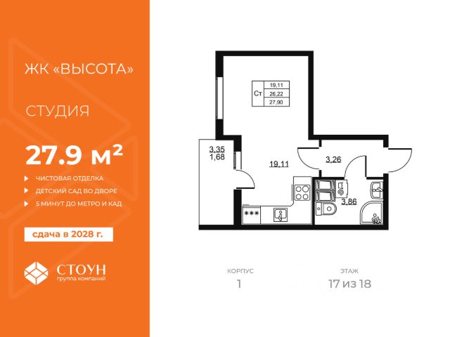 Продажа квартир-студий в поселке Бугры Всеволожского района от 3,2 млн руб.