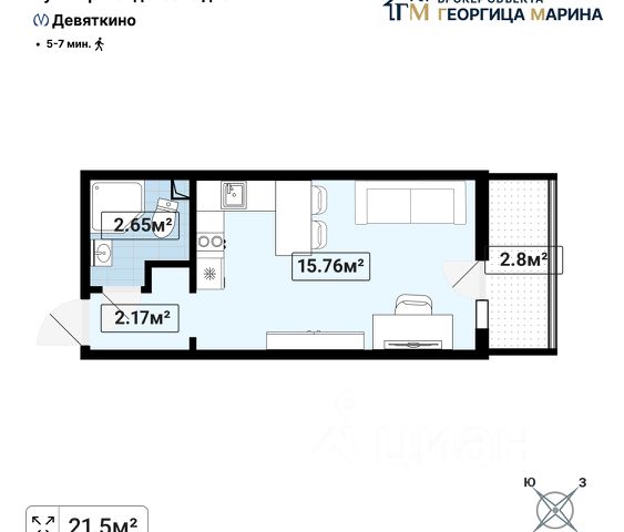 В 5 мин. пешком от метро в прямой продаже стильная квартира-студия общ. пл - 21.5 кв. м. с качественным ремонтом выполненным в приятных тонах, полностью укомплектованная! Готова встретить новых владельцев ценящих комфорт и уют! Указан честный метраж, строго по выписке, без учета лоджии! Идеально подойдет, как для личного проживания, так и для сдачи в аренду. Сдаваться будет с первого просмотра! ЖК "Мой город" монолитный, теплый дом 2016 года. С хорошей УК, чистыми подъездами, оборудованными электрическими пандусами и высокоскоростными лифтами. В студии продумано всё до мелочей, в ней есть всё необходимое для комфортного проживания: вместительная кухня, большой новый диван, два вместительных шкафа для одежды, телевизор, стол для организации рабочего места, варочная панель, холодильник, стиральная машина. Также имеется обувница, стеллаж, огромное зеркало с подсветкой в ванной, сушилка для белья. Мебель "ИКЕА". Надежная входная дверь на двух замках, блэкаут шторы. полноценная душевая кабина с тропическим душем. Вся сантехника поменяна и работает исправно. Застеклённая просторная лоджия -2.8 кв. м. Окна выходят на сторону Брачнего ручья. Проведен интернет Невалинк, остаётся даже роутер. В квартире всё сделано с душой и любовью - для себя! Остается всё, что вы видите на фото. телевизор LG, стиральная машина "INDEZIT" микроволновка "PANASONIC", холодильник "HAIER", вытяжка. В студии весьма продуманна и организована система хранения, максимально эффективная для данного формата пространства: установлен узкий высокий шкаф с зеркалом, который не перегружает интерьер и не занимает лишнего места, а также предусмотрены дополнительные места хранения в нише и в прихожей. Вся мебель и техника в идеальном состоянии! Район с развитой инфраструктурой и отличными транспортными развязками. Выезд на КАД в пяти минут езды. До метро 5 мин. пешком. Идет множество наземного транспорта в различные части города. Вблизи дома есть всё для жизни! Магазины, рестораны, фитнес с бассейном, кофейни, пекарни, аптеки и банки. ТЦ Экопарк и многое другое. Собственник один, взрослый. В договоре полная стоимость. Нет обремений и долгов. Быстрый выход на сделку. Звоните, с удовольствием отвечу на вопросы и организую просмотр. Квартира-студия на бульваре Менделеева в городе Мурино.