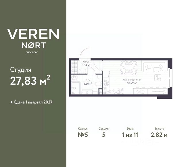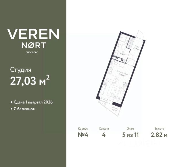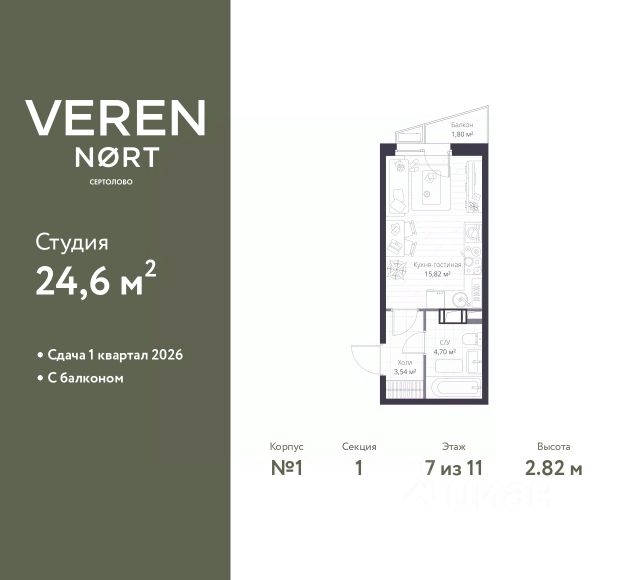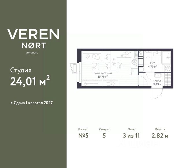 Студия на 8 этаже общей площадью 28,76 м² в IV очереди в жилом комплексе Сертолово Парк от застройщика ГК Алгоритм. Все квартиры в ЖК Сертолово Парк сдаются с чистовой отделкой в скандинавском стиле. Въезжайте и живите без дополнительных затрат на ремонт. Увеличенные оконные проемы и потолки высотой 2,74 м придают квартирам в ЖК Сертолово Парк ощущение простора, обеспечивая максимальное естественное освещение и свежий воздух. Энергосберегающий дом строится по финским технологиям: наружные стены изготовлены из заводских трехслойных железобетонных панелей толщиной 390 мм, фасады утеплены - толщина утеплителя 150 мм - и закрыты декоративным слоем -толщина 90 мм. Расположение ЖК: идеальное место для комфортной жизни в городе Сертолово. В 200 метрах находится детская и взрослая поликлиники. Вблизи детские сады и школы. ЖК Сертолово Парк окружен прекрасным лесным массивом, что создает уникальную атмосферу спокойствия и природной красоты прямо за порогом вашего дома. Для детей и взрослых на территории ЖК имеются детские и спортивные площадки. Кроме того, чтобы обеспечить безопасность и уединенность, территория жилого комплекса полностью закрыта. 4 закрытых многоуровневых наземных паркингов с грузовым лифтом на 1200 машин. Купить квартиру-студию в Сертолово.