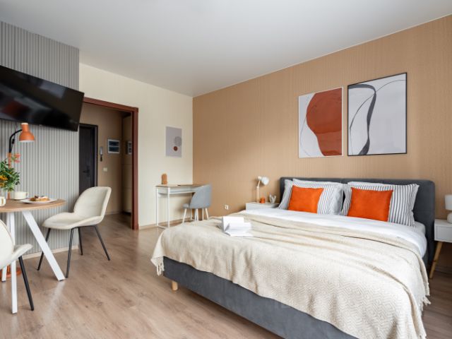 Окна выходят на проспект, идеальная шумоизоляция, двор с детской площадкой и вид на Мега Парк. Буквально в 5 минутах от дома - садик, школа, остановка напротив ,