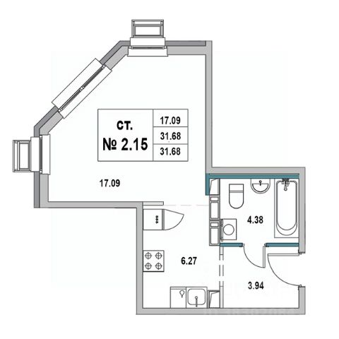 Продается КВАРТИРА-СТУДИЯ в Курортном районе СПб, в центре поселка Рощино.