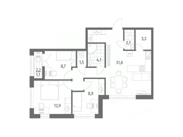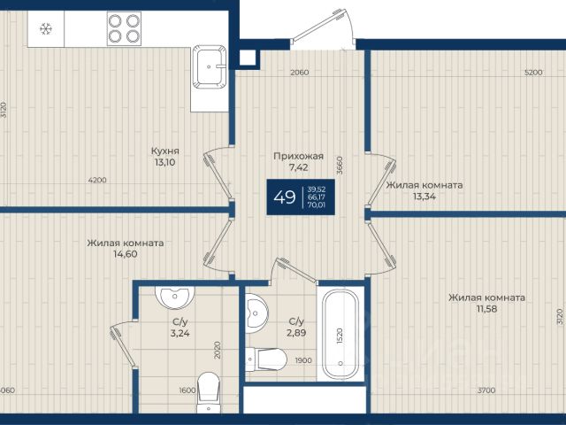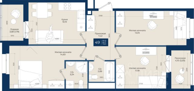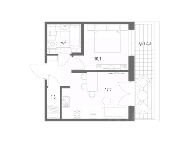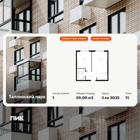 2-комн. квартира с предчистовой отделкой в ЖК "Брусника в Новоселье" на 8 этаже. Общая площадь: 43.78 кв.м. Высота потолков 2.7 м.