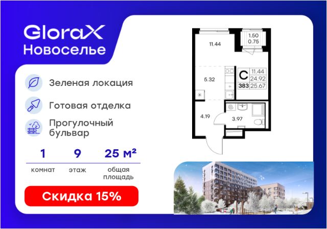 Продажа новой студии с отделкой от застройщика в ЖК "Загляденье" (микрорайон Новоселье, Ломоносовский район) Квартира площадью 23,56 м² с предчистовой отделкой "под ключ". Вам останется только завезти мебель и заселиться! Срок сдачи - IV квартал 2027 года. Доступна ипотека, рассрочка и индивидуальные условия оплаты. Преимущества локации: ЖК "Загляденье" расположен в живописном микрорайоне Новоселье на границе с Шунгеровским заказником - прекрасные виды и экология обеспечены. Район отличается удобной транспортной доступностью: • До центра Петербурга по ЗСД - 30 минут • До аэропорта Пулково - 20 минут • Ближайшие станции метро "Ветеранов" и "Автово" • ЖД станция "Сергиево" в 10 минутах езды (28 минут до центра) В шаговой доступности вся необходимая инфраструктура: поликлиника, ледовая арена, фитнес-клубы, школы, детские сады, магазины и кафе. Близость к историческим местам - Петергофу, Пушкину, Павловску. О жилом комплексе: Современные кирпично-монолитные дома с продуманными планировками. Закрытая охраняемая территория, подземный паркинг. Идеальный вариант для комфортного проживания в экологичном районе с развитой инфраструктурой! Звоните для просмотра и консультации.
