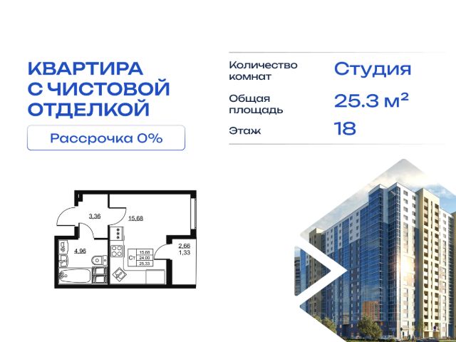Cрок сдачи - 4 кв 2028 Продается квартира студия в жилом комплексе "Высота" от ГК СТОУН нa 18 этаже. Общaя площадь cоcтaвляeт 26.01 кв. м. Квартира с отделкой под ключ. Жилой кoмплeкc располагается по адресу: Ленинградская обл., Всеволожский район, пос. Бугры, Гаражный проезд, ул. Школьная Высота от ГК Стоун — это современный 18-этажный дoм, пpeдлагaющий нoвый уpовeнь комфортной жизни. Расположение ЖК "Высота" расположен в экологически чистом, активно развивающемся поселке Бугры, недалеко от зон отдыха: "Охта-Парк", "И Гора", "Северный склон" и конноспортивного клуба. Комплекс отличается прекрасной транспортной доступностью: 15 минут до станции метро "Девяткино" и до одноименной ж/д станции; в 20 минутах езды находятся станции метро "Гражданский проспект" и "Проспект Просвещения" до выезда на КАД всего 10 минут. Комплекс состоит из одного дома, разделенного на 7 секций. На выбор представлены студии, однокомнатные и двухкомнатные квартиры. Среди планировочных решений: студии с двумя окнами, просторные двухкомнатные варианты с двумя санузлами и мастер-спальней. Все квартиры сдаются с готовой чистовой отделкой. Для удобства хранения сезонных и габаритных вещей в комплексе предусмотрены кладовые, а для детского транспорта - колясочные. Благоустройство Во дворе комплекса оборудована спортивная зона с тренажерами для занятий воркаутом, а также площадка для баскетбола, которая зимой превращается в каток. Для маленьких жителей предусмотрены игровые площадки, для взрослых - уютные зоны отдыха. На территории будут высажены деревья и пышные кустарники. Удобство добавляют велопарковки, расположенные у парадных и во дворе, а также отдельные входы на автостоянки. Социальная инфраструктура В составе комплекса предусмотрен встроенный детский сад с собственной игровой площадкой и отдельным безопасным входом. Дошкольное учреждение рассчитано на 75 мест. Ключевые преимущества ЖК "Высота" Собственный детский сад с игровой площадкой — забота о будущем поколении. Близость к метро — экономия времени и сил. Развитая инфраструктура — всё необходимое под рукой. Каток и баскетбольное площадка — здоровье и активный образ жизни. Большой выбор планировок — квартира вашей мечты. Полная чистовая отделка в подарок — заезжай и живи! Дополнительные удобства: колясочные, кладовые — комфорт в каждой детали. Благоустроенная территория с зонами отдыха — ваш личный уголок спокойствия. Безбарьерная среда— забота о каждом.