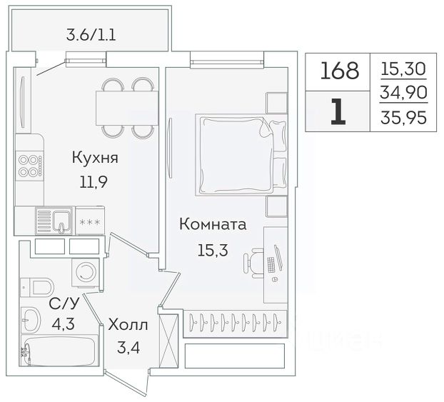• ✅ Минимальная площадь: 24,9 м²