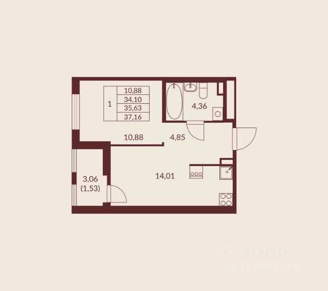 Квартира площадью 37,71 м², с комнатой 14,18 м² и просторной кухней 11,52 м². Санузел раздельный, есть лоджия. Расположена на первом этаже - удобно для семьи с детьми, пожилых людей или просто тех, кто не любит ждать лифт. Из окон открывается приятный вид на парк, рядом нет шумных дорог в квартире будет тихо и спокойно.