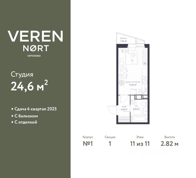 Продаётся студия в строящемся доме (Корпус 8.2), срок сдачи: IV-кв. 2025, общей площадью 27.82 кв.м., на 4 этаже. ЖК расположен в Сертолово, мкр.Черная речка. 25 минут на машине до метро Парнас, либо 30 минут до метро Пр.Просвещения. 1 ноября 2022 г. объявлен старт продаж, а значит именно сейчас самые привлекательные цены. Проектное финансирование строительства осуществляет ПАО "Сбербанк". Объект аккредитован по ипотеке в ведущих банках, есть выгодные варианты рассрочки от застройщика, принимается мат.капитал. ЖК "Новая история" это новый малоэтажный жилой комплекс, имеющий свой неповторимый стиль. КОНКУРЕНТНЫЕ ПРЕИМУЩЕСТВА ЖК "НОВАЯ ИСТОРИЯ" 1. Технология строительства кирпично-монолитные дома. 2. Привлекательные современные фасадные решения. 3. Просторные остекленные балконы/лоджии почти в каждой квартире. 4. Закрытые дворы. Посадка жилых домов сформирована таким образом, что каждые 2 дома объединяются общим дворовым пространством, которое огораживается забором. 5. Видеонаблюдение в каждом доме и каждом дворе. Система видеонаблюдения, которой каждый покупатель может пользоваться в своем мобильном телефоне через специальное приложение. 6. Грузопассажирские двухсторонние лифты в каждом подъезде. Т.е. лифт поднимает с уровня земли на каждый этаж. Таким образом, решается вопрос с обеспечением доступа маломобильных групп населения, а также удобен для всех остальных жильцов. Нет необходимости в различных пандусах, чтобы попасть в дом или на первый этаж. 7. Колясочные в каждом подъезде. 8. Комфортная высота потолков от 2,75 до 3 м. 9. Горизонтальная система теплоснабжения (трубы отопления в квартире проходят в стяжке пола и подводятся к радиаторам), а также "безстояковая" система водоснабжения в квартирах (водорозетки устанавливаются на стене, граничащей с общим коридором, под потолком) 10. Многообразие и продуманность планировочных решений. 11. Бесплатные wi-fi зоны во дворах. 12. Велопарковки. 13. Бачки для раздельного сбора мусора. 14. Спам-контейнеры в подъездах. 15. Интернет заведен в каждую квартиру. 16. Розетки на парковках для зарядки электромобилей. 17. В каждой квартире установлен видеофон. 18. Прогулочные зоны. 19. Индивидуальная система естественной вентиляции немецкого бренда Schiedel (для каждой квартиры свой вент.канал, не соприкасающийся с другими, т.е. запахи не будут попадать из квартиры в квартиру). 20. Система "умная инженерия" в каждой квартире: -Счетчики потребления тепловой энергии для каждой квартиры с дистанционным снятием показаний (жильцы платят только за реальных расход тепла, которое они потребили) - термоголовка на каждом радиаторе (регулирует тепло в квартире, позволяет существенно экономить на теплоснабжении); - электронные датчики протечки воды и электронный механизм для запирания (отправляет сигнал о протечке в мобильное приложение, а также сразу в управляющую компанию, перекрывает воду в месте установки крана); - счетчики на воду с дистанционным снятием показаний, передающие показания автоматически в управляющую