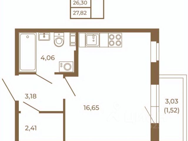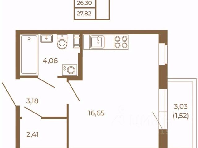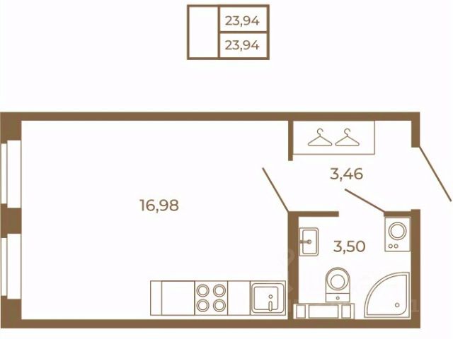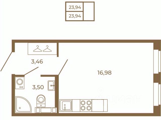 Квартира-студия расположена на 4-м этаже 4-х этажного жилого дома. Общая площадь квартиры - 24,4 кв.м., высота потолка 2.75 м., застекленная лоджия.
