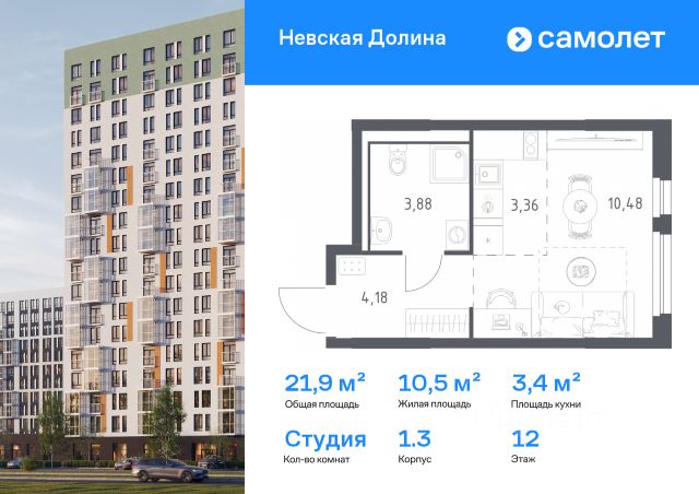 Продается просторная студия от застройщика в жилом комплексе "Город звезд" в новом городе на правом берегу Невы. До метро можно добраться на транспорте всего за 13 минут. Удобная, классическая, функциональная европланировка, просторная прихожая 3.28 м². Общая площадь студии - 25.26 м², жилая 18.25 м², высота потолка 3 м. Квартира продается с отделкой "NORD LINE SILVER". Что особенного в ЖК "Город звезд"? • Инновационный Лицей Setl с оригинальной архитектурной концепцией и уникальной образовательной средой • Невский лесопарк под окнами - всегда свежий воздух и полноценный отдых на природе • Четыре тематические площади отдыха с разнообразным благоустройством • Аллея Звёзд - променад протяженностью 5 км с ландшафтным озеленением, зонами отдыха и велодорожкой • Выход на набережную реки Утки, где можно порыбачить или взять напрокат лодку • Единая входная группа с ресепшен и подземный паркинг