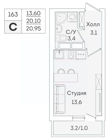Продаётся квартира-студия площадью 21,79 кв.м на 17 этаже 17 этажного дома (Корпус 4, Секция 1) проекта ПИК Заречный парк. Светлый просторный подъезд на уровне земли, функциональная планировка, большие окна, c отделкой. Жилой квартал "Заречный парк" расположен в районе Новое Девяткино Ленинградской области. В 7 минутах на автомобиле - станция метро "Девяткино", до КАД - 10 минут на машине. В 2026 году будет достроена шестиполосная трасса в обход Мурино, примыкающая к Пискарёвскому проспекту. Она станет дополнительным выездом на КАД для жителей "Заречного парка". Проект включает восемь домов высотой от 15 до 24 этажей, три многоуровневых паркинга, детский сад и школу. В зелёных дворах-парках будут оборудованы современные детские и спортивные площадки, обустроены места для отдыха. На первых этажах разместятся магазины, кафе и другие сервисы. Планировки продуманы так, чтобы каждый квадратный метр жилой площади можно было эффективно использовать. Все квартиры сдаются с готовой отделкой. Артикул 1060208 (Застройщик ООО "СПЕЦИАЛИЗИРОВАННЫЙ ЗАСТРОЙЩИК ИНВЕСТАЛЬЯНС") [cn_sbp_1849629]