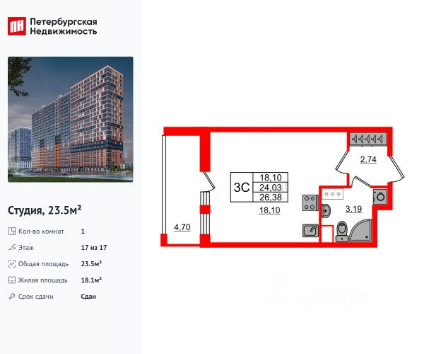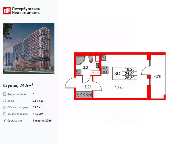 Предлагается к приобретению уютная, светлая, тёплая студия площадью 26.1 квадратных метров на последнем, 24-м этаже кирпичного дома новой постройки (2023 год) в динамично развивающемся районе Санкт-Петербурга в ЖК "Приневский". Из окон квартиры открывается завораживающий вид на Санкт-Петербург, высота этажа обеспечивает дополнительный комфорт и тишину.