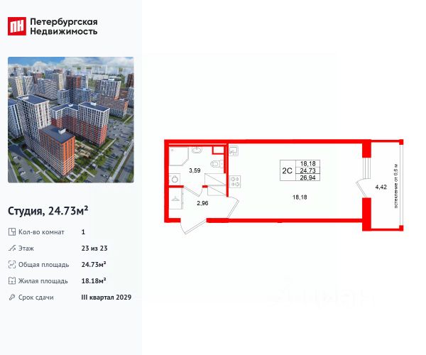 Продажа квартир-студий на последнем этаже рядом с метро Рыбацкое