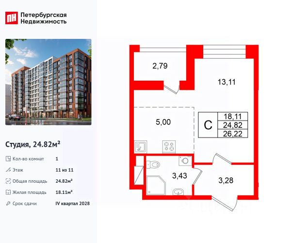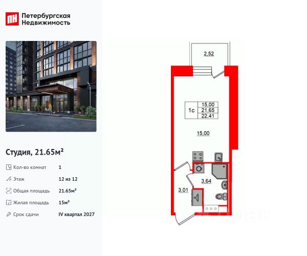 Продается уютная студия от застройщика в жилом комплексе "Парадный ансамбль" в престижном Московском районе. До метро можно добраться на транспорте всего за 20 минут. Удобная, классическая, функциональная европланировка, вместительная прихожая 3.06 м². Общая площадь студии - 21.68 м², жилая 15.59 м², высота потолка 3.07 м. Квартира продается с отделкой "Норд Лайн светлый". Что особенного в ЖК "Парадный ансамбль"? • Уникальные квартиры. Хай Флет (High Flat) на последних этажах, палисадники у квартир на первом этаже, семейные секции, квартиры с саунами и окном в ванной • Масштабное малоэтажное строительство в престижном Московском районе • Рекреационные зоны: парадный парк в центре квартала, ручей с собственной набережной, центральная площадь, ресторанный комплекс и пешеходный бульвар • Фасады из керамогранита и кирпича с яркими и акцентными входными группами • Две самые большие площадки Setl Kids и Setl Sport • Инновационный Лицей Setl с оригинальной архитектурной концепцией и уникальной образовательной средой