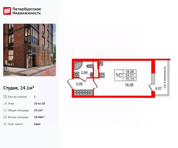 Продается уютная студия от застройщика в жилом комплексе "Сенат" в престижном Московском районе. До метро можно добраться пешком всего за 20 минут. Удобная, классическая, функциональная европланировка, вместительная прихожая 3.09 м². Общая площадь студии - 24.1 м², жилая 18.08 м², высота потолка 3 м. Квартира продается с отделкой "NORD LINE SILVER ВК". Что особенного в ЖК "Сенат"? • Престижный Московский район • Авторская архитектурная концепция • Центральная входная группа с ресепшен и лаундж-зонами • Променад с воздушным мостом и просторными зонами отдыха • Зимний каток, площадки SetlKids и уютные дворы-патио • Инновационный Лицей Setl с оригинальной архитектурной концепцией и уникальной образовательной средой