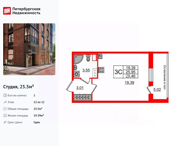 Продается просторная студия от застройщика в жилом комплексе "Сенат" в престижном Московском районе. До метро можно добраться пешком всего за 20 минут. Удобная, классическая, функциональная европланировка, вместительная прихожая 3.01 м². Общая площадь студии - 25.5 м², жилая 19.39 м², высота потолка 3 м. Квартира продается с отделкой "NORD LINE SILVER ВК". Что особенного в ЖК "Сенат"? • Престижный Московский район • Авторская архитектурная концепция • Центральная входная группа с ресепшен и лаундж-зонами • Променад с воздушным мостом и просторными зонами отдыха • Зимний каток, площадки SetlKids и уютные дворы-патио • Инновационный Лицей Setl с оригинальной архитектурной концепцией и уникальной образовательной средой