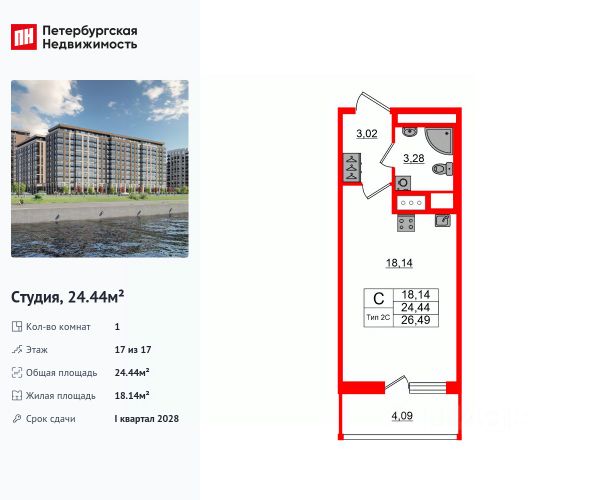Цена со скидкой до 30% в прямой продаже от застройщика — только в этом месяце. При покупке апартаментов - паркинг за полцены. На все апартаменты действует беспроцентная рассрочка. Купите на распродаже! Покупка недвижимости в Zoom на Неве сейчас со скидкой до 30% позволит через 2 года получить доход до 6 300 000 руб. Роскошные виды на Неву. Апартамент-студия в комплексе класса бизнес-лайт Zoom на Неве на 17-м этаже. Общая площадь 24,1. Без отделки. Zoom на Неве расположен в новом месте силы рядом с центром города на первой линии Октябрьской набережной в Невском районе, всего в 7 км от исторической части Санкт-Петербурга. Большой выбор эргономичных и максимально продуманных планировок позволит каждому найти вариант по душе. Панорамные виды на Неву, благоустроенные дворы, детская игровая комната, подземный паркинг, коммерческие зоны на первом этаже, это и многое другое делает Zoom на Неве идеальным местом для жизни. Особенности: - Панорамные виды на Неву и город; - 10 мин. до Парка Строителей, 15 мин. до Лондон-молла, Ленты, Максидома, 15 мин. до метро "ул. Дыбенко", 12 мин. до КАД, 10 мин. до центра; - Единая архитектурная концепция. Сдержанные и монументальные фасады в неоклассическом стиле; - Парадный лобби для жильцов. Единый вход в комплекс с администратором, зоной ресепшн и охраной, зоной для бесконтактной доставки посылок и еды; - Подземный отапливаемый паркинг с доступом из парадной; - Доступно 3 варианта отделки на выбор: черновая, предчистовая (White Box) и чистовая; - Зоны отдыха для взрослых и детей, Wi-Fi-покрытие во дворе и в паркинге, зоны для питомцев, арт-объекты и много другое. В шаговой доступности вся необходимая инфраструктура от детских садов и школ до супермаркетов и салонов красоты; - Все происходящее контролируется видеокамерами, а покой внутренней территории и безопасность ваших детей гарантируется полным отсутствием транспорта во дворах в концепции "без машин".