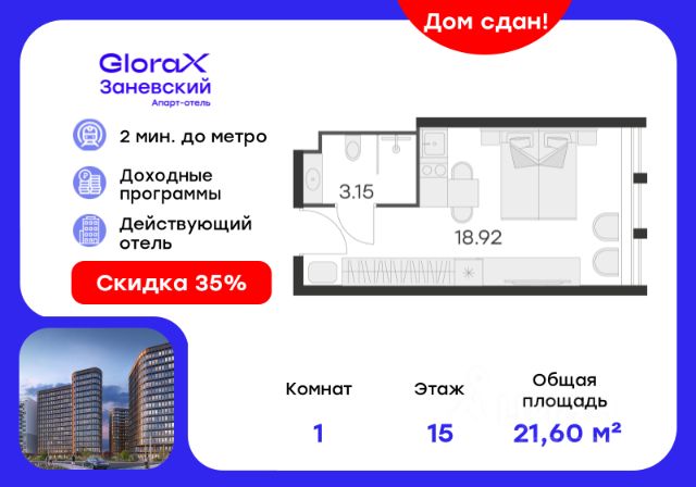 Продаются апартаменты-студия площадью 20,91 кв.м на 15 этаже 15 этажного дома (Вольта, Секция 1) проекта ПИК Вольта. "Вольта" - готовые апартаменты, которые можно приобрести для себя или сдавать через профессиональную управляющую компанию "МТЛ". Она возьмёт на себя заботы по обслуживанию и сдаче в аренду на короткий и длительный срок. Проект расположен недалеко от исторического и делового центра Санкт-Петербурга. Дорога на автомобиле до Невского проспекта займёт 15 минут. До станции метро "Ладожская" получится дойти за 8 минут, до двух остановок общественного транспорта - за минуту. Рядом находятся четыре вокзала и Свердловская набережная. На первом этаже предусмотрено просторное дизайнерское лобби, ресторан, круглосуточный ресепшен и кабинет врача. Кроме того, здесь появятся такие сервисы, как химчистка, прачечная, клининг, доставка продуктов, консьерж-сервис. Для прогулок возле реки Охты благоустроят набережную. Для автомобилей предусмотрена парковка и подземный паркинг. Артикул 819087 (Застройщик АО СЗ "Ладожский") [cn_sbp_1774395]