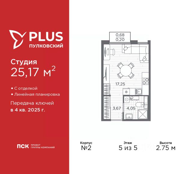 Отличная планировка: общая площадь студии (с учетом площади балкона) - 28,94 м2, комната 18.18 м2, застекленный балкон площадью 4,32м2, вместительная прихожая 3.36 м2, санузел 3,08 м2, высота потолка 3.07 м.
