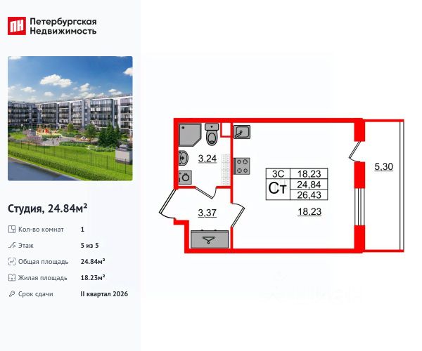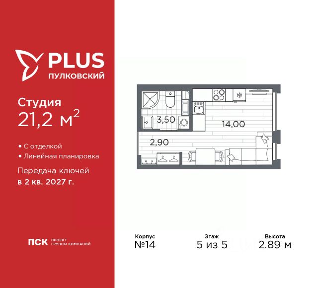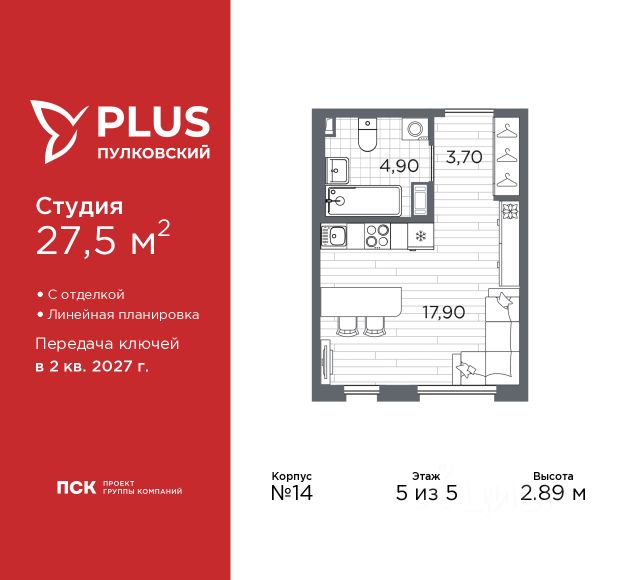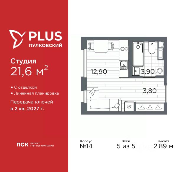 Продается 1-комн. квартира-студия с отделкой в ЖК "PLUS Пулковский" на 5 этаже. Общая площадь: 24.64 кв.м., площадь гостиной 16.37 кв.м., из которых 5 кв.м. выделено под кухонную зону. Все окна выходят на одну сторону. В квартире один балкон, один совмещенный санузел. Высота потолков 2.75 м. Дом монолитный, многоподъездный, высотой 5 этажей. Квартира находится в 3-й секции в корпусе 1. На этаже 9 квартир. В подъезде 1 грузовой лифт. Начало строительства - 4 квартал 2023 года. На сегодняшний день строительство завершено, дом сдан в 4 квартале 2025 года. Оформление сделки по договору купли-продажи. ЖК "PLUS Пулковский" расположен в престижном Московском районе на пересечении Пулковского и Волхонского шоссе, по которым можно быстро добраться до КАД и до станций метро Московская и Звёздная. Поблизости расположены дворцово-парковые ансамбли Пушкина, Павловска, Петергофа, Гатчины, Ломоносова, а также вся торговая и развлекательная инфраструктура: ТК Лето, Outlet Village Pulkovo, Пулково-3, гипермаркеты Лента, Окей, Metro. На территории комплекса будут построены средняя образовательная школа на 825 мест с двумя бассейнами, 2 детских сада на 220 мест каждый. В детских садах тоже будут бассейны. Кроме этого будет построен медицинский центр для взрослых и детей. Во дворах буду оборудованы спортивные и безопасные детские площадки, на первых этажах домов будут расположены коммерческие помещения. Для автолюбителей будут подземные и наземный паркинги. Для жителей домов будет доступно "приложение жителя", которое предоставит такие возможности: — дистанционное открытие дверей в парадную и на территорию комплекса, — просмотр изображений с видеокамер, — контроль за показаниями счетчиков, — коммуникация с УК. Показания всех счетчиков будут собираться дистанционно. В квартирах будет выполнена коллекторная разводка отопления в стяжке пола от коллекторов в межквартирных коридорах. Застройщик ЖК "PLUS Пулковский" - группа компаний ПСК, которая является одной из ведущих девелоперских компаний Санкт Петербурга. Более 16 лет она возводит в Северной столице качественное жилье премиум, бизнес и комфорт-класса, социальные объекты школы и детские сады, апарт-комплексы и торговые центры и является четырехкратным обладателем золотого знака "Надежный застройщик России". #26BDUD