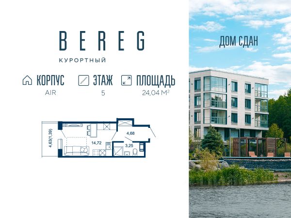 Апартамент 214 площадью 23,32 кв.м. в корпусе Air с видом во двор Дом сдан!!! О проекте: "Bereg. Курортный" первый проект петербургского девелопера ELEMENT (ранее Element Development) в Санкт-Петербурге, который был сдан в мае 2024 года. Малоэтажный проект расположен в тихой части Сестрорецка, в окружении парков "Гагарка" и "Дубки", на берегу живописного канала. В составе комплекса три корпуса: AIR, AQUA и WOOD ("Воздух", "Вода" и "Дерево"), которые включают 715 апартаментов, в том числе юниты с террасами-патио на первом этаже. Комплекс обеспечен всей инфраструктурой для комфортной жизни от детского клуба до собственной спа-зоны с бассейном, сухой сауной и тренажерным залом. "Курортную" атмосферу поддерживают концепция "двор без машин", перголы для отдыха, детские площадки в стиле "эко", променад на набережной с "островками" для медитации, а также зеленое благоустройство от Derevo Park на 28 000 растений. "Bereg. Курортный" ("Берег Курортный") расположен в тихой части Сестрорецка, в окружении заповедного лесопарка "Гагарка". Напротив, проекта любимый петербуржцами парк "Дубки". Всего в 300 метрах от комплекса находится небольшой яхт-клуб, где можно оставить свой катер или небольшую яхту. Преимущества "Bereg. Курортный" ("Берег Курортный"): 3 корпуса; 5 этажей; Концепция "двор без машин"; Закрытая территория с системой контроля доступа; Своя инфраструктура: лобби, бассейн, коворкинг, детский клуб; Собственная благоустроенная набережная; 300 метров до Финского залива; Рядом расположен в лесопарке; Эко-тропа с выходом в лесопарк "Гагарка"; ELEMENT создаёт инновационные жилые и коммерческие объекты в Санкт-Петербурге и Москве, которые устанавливают новые стандарты эффективной жизни в мегаполисах.