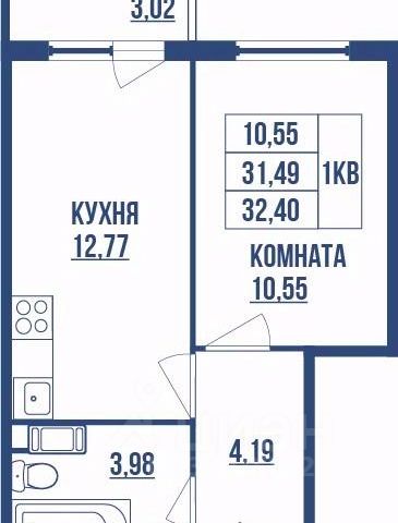 отдельный туалет 1,2 м2