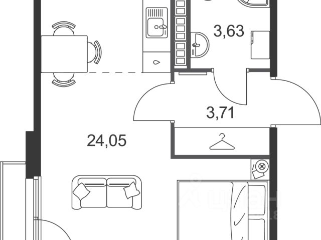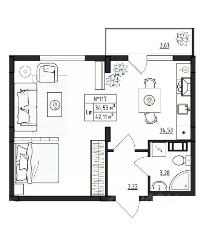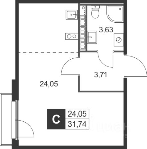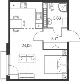 - Общая площадь 26 кв.м. без учета большой просторной лоджии. Комната разделена на две зоны (без перегородок):жилая 15 кв.м. и зона кухни 4 кв.м., с выходом на просторную, застекленную лоджию. Прихожая 4 кв.м., большой совмещенный санузел с установленной полноценной ванной.