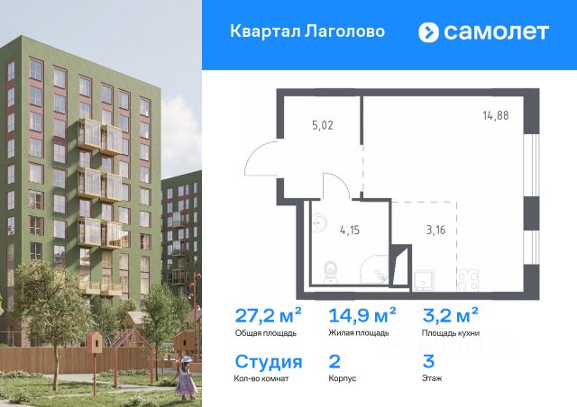 Студия площадью 22.60 в ЖК "А101 Лаголово" c лоджией на 2 этаже. Квартира с отделкой. Вид из окна во двор. В квартире 1 санузел. Высота потолков 2.95 м. Ключи в 2025 году. Предложения от застройщика на октябрь 2025: - Гибкая рассрочка 20 000 руб/мес. и первым взносом 10%. ОТДЕЛКА Для квартир с чистовой отделкой предлагается три варианта дизайна: Классика, Карелия светлая и Карелия темная. Варианты всех дизайнерских решений представлены на фотографиях. Подробности можно уточнить у менеджера. На все отделочные работы от застройщика предоставляется гарантия. ОСОБЕННОСТИ ПЛАНИРОВКИ Глубокая лоджия от 1,4м позволяет организовать отдельный кабинет, мастерскую или зимний сад с лаундж-зоной. ПАРАДНАЯ В каждой парадной предусмотрены места для хранения велосипедов и колясок, гостевой санузел, лапамойка (место для мытья домашних животных или колес велосипедов) и удобная зона ожидания для гостей. ДВОРЫ И ОКРУЖЕНИЕ Просторные дворы свободны от машин и закрыты от посторонних. Большую часть комплекса займут благоустроенные зелёные зоны, теневые сады и городские общественные пространства с развитой тротуарной сетью и велодорожками. Каждый дом оборудован системами видеонаблюдения и контроля доступа. "А101 Лаголово" - современный город у подножия знаменитых Дудерговских высот, в объятиях чистейших озёр и зелёных живописных массивов, наполненный всем необходимым для счастливой жизни. ИНФРАСТРУКТУРА. Мы занимаемся комплексным освоением территории. Наш приоритет - доступность всех сервисов для счастливой жизни. 1. Лаголово-город 15-ти минутной доступности. Вся необходимая инфраструктура: магазины, салоны красоты, образовательные учреждения, медицинские центры находятся в 15-ти минутах пешей прогулки от любой точки жилого комплекса. Это позволяет не тратить время на долгие перемещения. 2. Представьте идеальный город, где ребенок может спокойно играть, а пожилой человек наслаждаться заслуженным отдыхом. Жилая среда нашего комплекса может комфортно использоваться как 8-летним ребенком, так и 80-летним пожилым человеком. Дома, улицы, общественные пространства, тротуары спроектированы с заботой о людях разных возрастов. 3. Мы активно развиваем авторскую образовательную экосистему "Лёрнити". Она включает строительство 8 современных детских садов (2000 мест) и 3 школ (2945 учащихся). Мы учим родителей гармонично общаться с детьми, помогаем малышам подготовиться к школе, а подросткам - выбрать будущую профессию и развить таланты. Не хватает средств на покупку кладового помещения? Оформите ипотеку на квартиру и добавьте к ней часть стоимости кладовой. ЗАСТРОЙЩИК ГК "А101" - крупный инвестиционно-строительный холдинг, занимает 6-е место по объему строительства в России (по данным "Единого ресурса застройщиков" на 2023 год). НКР присвоило ГК "А101" кредитный рейтинг A+.ru, подтверждая его надежность и финансовую устойчивость для завершения строительства ЖК.