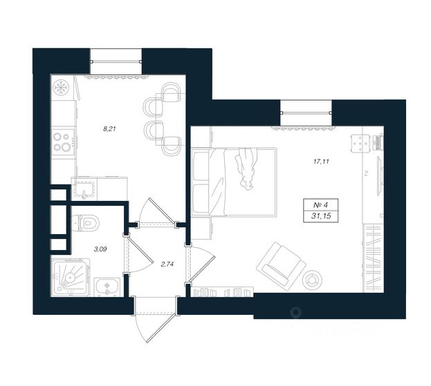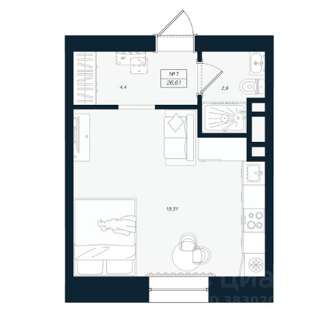 Продаётся студия в строящемся доме (Феникс), срок сдачи: I-кв. 2027, общей площадью 27.88 кв.м., на 4 этаже.