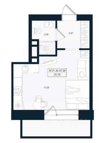 Продаётся студия в строящемся доме (Феникс), срок сдачи: I-кв. 2027, общей площадью 21.58 кв.м., на 4 этаже.