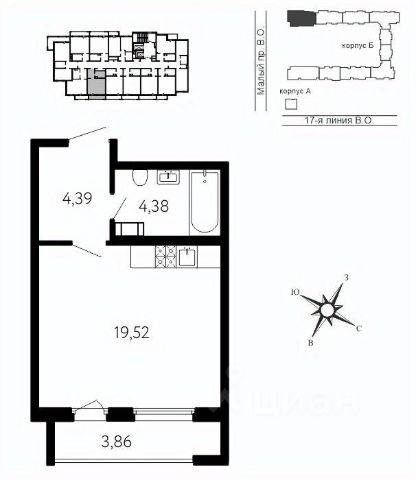 Продается однокомнатная квартира-студия с предчистовой отделкой в ЖК "Аквилон Ливз" на 12 этаже. Общая площадь: 39.31 кв.м., площадь гостиной 29.66 кв.м., из которых 18.87 кв.м. выделено под кухонную зону. Все окна выходят на одну сторону. В квартире одна лоджия, один совмещенный санузел. Высота потолков 2.75 м.