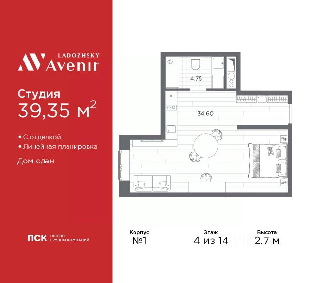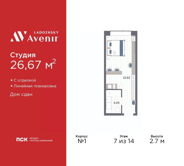 Продается студия в ЖК "ЛСР. Ржевский парк" на 13 этаже. Общая площадь составляет 23.90 кв. м. Квартира с чистовой отделкой. Жилой комплекс "ЛСР. Ржевский парк" располагается по адресу Ленинградская область, Всеволожский район, Ковалёво пос.. ЛСР. Ржевский парк - современный масштабный эко-проект: с пешеходными бульварами и велодорожками, площадками для спорта и отдыха в 30 минутах от центра Санкт-Петербурга. Расположение комплекса: • 13 минут до ж/д станции "Ковалёво"; • 30 минут до центра Санкт-Петербурга на автомобиле; • 26 минут до Финляндского вокзала. Квартира сдается с готовой отделкой из современных экологичных материалов: ламинированные межкомнатные двери, двухкамерные стеклопакеты, флизелиновые обои, качественный матовый ламинат с фактурой дерева, керамическая плитка. Между домами будут устроены бульвары, пешеходные и велодорожки, игровые и спортивные площадки, зоны отдыха для детей и взрослых. На первых этажах находятся колясочные, магазины, кафе и сервисные службы. На территории построят 4 школы, 9 детских садов, 2 спортивных комплекса, поликлинику, станцию скорой помощи и пожарное депо. Первый детский сад откроется уже в 2025 году. Преимущества комплекса: • Рядом лесопарк и Ладожское озеро • Живописные виды из окон • Безбарьерная среда • Развитая социальная инфраструктура • Умный дом • Двор без машин Успейте приобрести квартиру на выгодных условиях! Чтобы узнать подробности, обращайтесь за консультацией по телефону. Продам квартиру-студию с отделкой в готовой новостройке рядом с метро Новочеркасская.