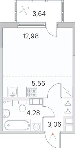 Площадь квартиры 18.20 + балкон 3.60 кв.м. в Шушарах, в развитом и престижном районе СПб
