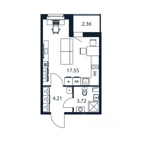 В продаже от застройщика студия 22.6 кв. м с черновой отделкой и практичной планировкой для удобной организации пространства. Корпус сдан, идет выдача ключей.