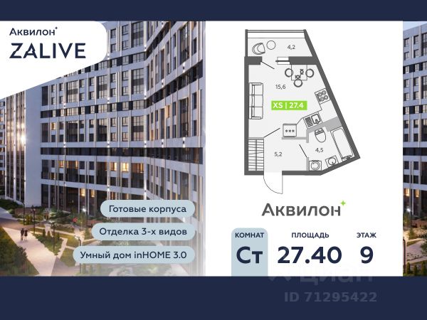 Продаётся квартира-студия площадью 24,2 кв.м на 10 этаже 12 этажного дома (Корпус 1, Секция 4) проекта ПИК Шкиперский 19. Светлый просторный подъезд на уровне земли, функциональная планировка, большие окна, предчистовая отделка. Жилой квартал возводится на Васильевском острове, в пешей доступности от станции метро "Приморская" и с удобным выездом на ЗСД. Здесь будут квартиры с высокими потолками, окнами в пол и великолепным видом на Финский залив. Жилой квартал "Шкиперский 19" возводится в историческом районе Санкт-Петербурга - на Васильевском острове. Здания высотой от 8 до 12 этажей выполнены в природных оттенках, поэтому гармонично вписываются в архитектурный ландшафт Васильевского острова. На первых этажах домов откроются магазины, кафе и полезные сервисы: чтобы сходить за свежей выпечкой к завтраку, можно будет просто спуститься на лифте. Для детей из "Шкиперского 19" на территории квартала откроются школа и детский сад. Парадный вход "Шкиперского 19" - просторное и светлое гранд-лобби в стиле джапанди. В нём будут сочетаться элементы японских и скандинавских традиций дизайна. Помимо зоны ожидания с мягкой мебелью, здесь будет детская комната и гостевой санузел. В парадных предусмотрены комнаты для колясок и лапомойки для собак, тихие и быстрые лифты. Автомобиль можно будет оставить в подземном паркинге, а крупные и сезонные вещи - в индивидуальной кладовой. Доехать от квартала до Невского проспекта можно за 15 минут, до ЗСД - за 12 минут. В 20 минутах ходьбы находится станция метро "Приморская", и в 2030 году планируется открытие станции "Гавань" в 5 минутах от проекта. Проект принадлежит "Серии плюс". В "Серию плюс" входят жилые кварталы с повышенным уровнем комфорта и уникальной архитектурой. В светлых уютных лобби с дизайнерской отделкой предусмотрены колясочная и гостевой санузел. Артикул 850933 (Застройщик ООО "СЗ "Москворецкий дом") [cn_sbp_1812676] квартира-студия в готовой новостройке рядом с метро Приморская.
