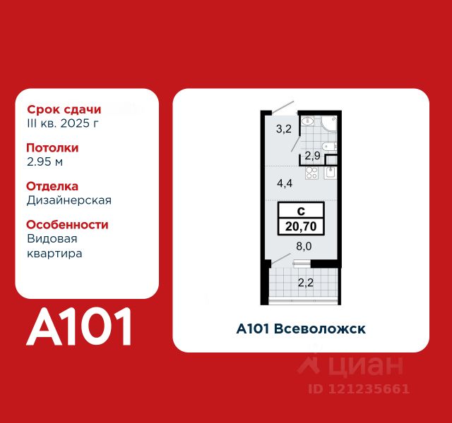 Продаётся квартира-студия площадью 25,64 кв.м на 8 этаже 15 этажного дома (Корпус 6, Секция 2) проекта ПИК Янинский лес. Светлый просторный подъезд на уровне земли, функциональная планировка, большие окна, c отделкой. Жилой квартал "Янинский лес" возводится в районе Янино-1 Ленинградской области. Автобусная остановка находится в 3 минутах пешком. Проект расположен вплотную к восточной границе Санкт-Петербурга - в 4 минутах от КАД. До метро "Ладожская" - 23 минуты на общественном транспорте. До исторического центра города можно доехать за 25 минут на автомобиле. "Янинский лес" - масштабный проект из 32 жилых корпусов, где будет всё для комфортной жизни. Здесь предусмотрены надземные паркинги, откроются детские сады, школа и поликлиника. Кроме этого, появятся места, в которых можно проводить свободное время: ледовая арена и торговый центр площадью больше 3000 м². Жилой район строится по всем правилам ПИК-Стандарта: в зелёных дворах-парках появятся современные детские и спортивные площадки, пешеходный бульвар и другие места для отдыха. На первых этажах разместятся магазины, кафе и другие сервисы. Во дворах не будет автомобилей, а для гостей предусмотрены парковочные места. Проект окружают лесные массивы. В пешей доступности находится Ржевский лесопарк: летом там можно гулять и собирать грибы, а зимой кататься на лыжах. Также рядом расположен памятник природы Колтушские высоты - парк с обустроенными экотропами и веломаршрутом. А главное место притяжения местных жителей - озеро с обустроенным местом для пикников. Артикул 915599 (Застройщик ООО "СПЕЦИАЛИЗИРОВАННЫЙ ЗАСТРОЙЩИК"ЭКСТРАГРАД") [cn_sbp_1705691] Купить квартиру-студию в готовой новостройке рядом с метро Улица Дыбенко.