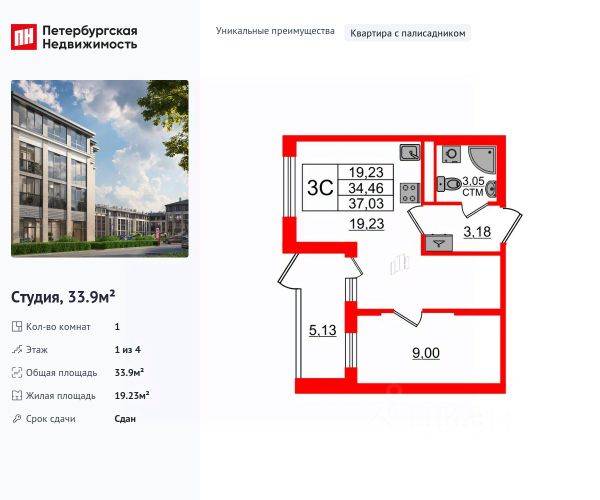 • ✅ Объект наибольшей площади: 33,9 м²